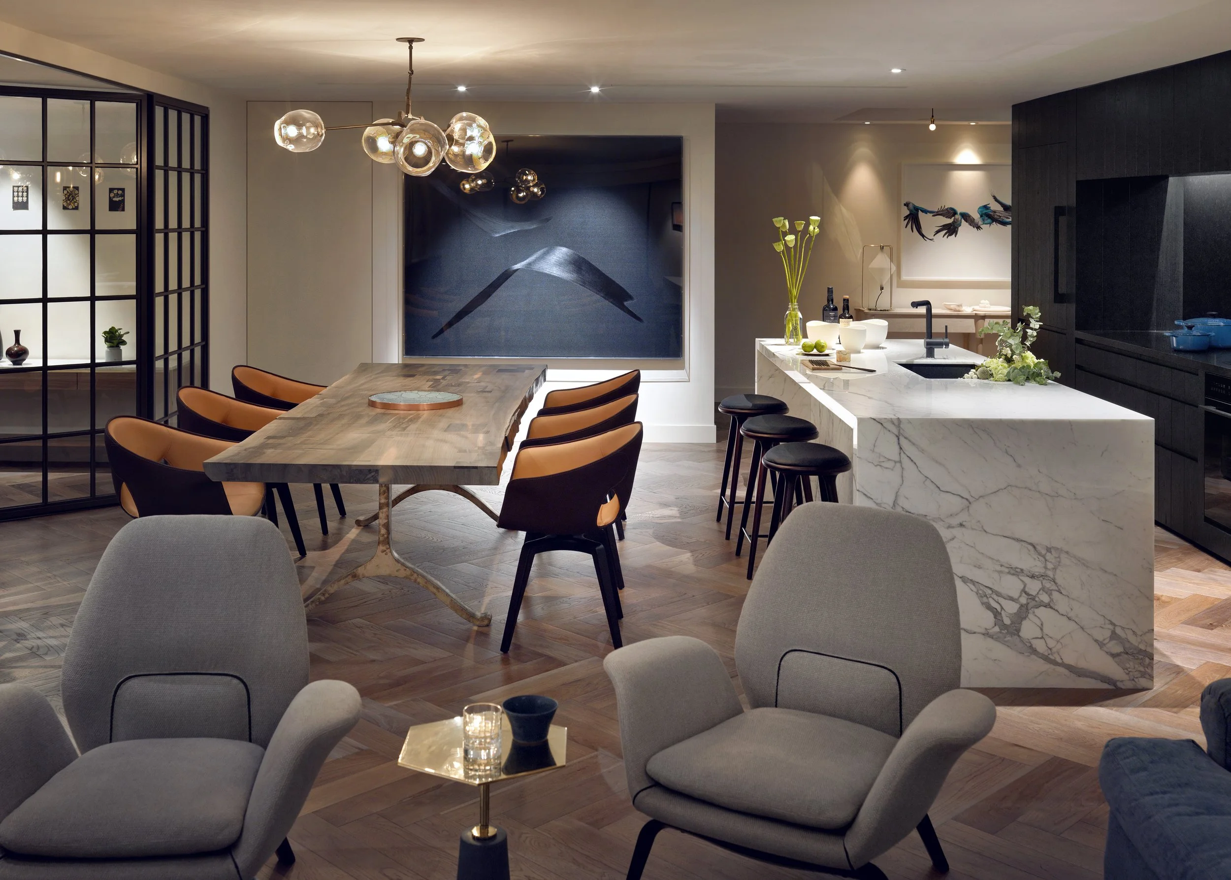 Located in the cosmopolitan Xinyi District of Taipei, our globe-trotting client came to us to transform two existing apartments into one expansive 250-square-metre residence overlooking Sun Yat Sen Memorial Park. Working with a highly skilled local contractor, the studio provided a full interior design service which extended to custom furniture pieces and curation of furniture, lighting, and rugs.